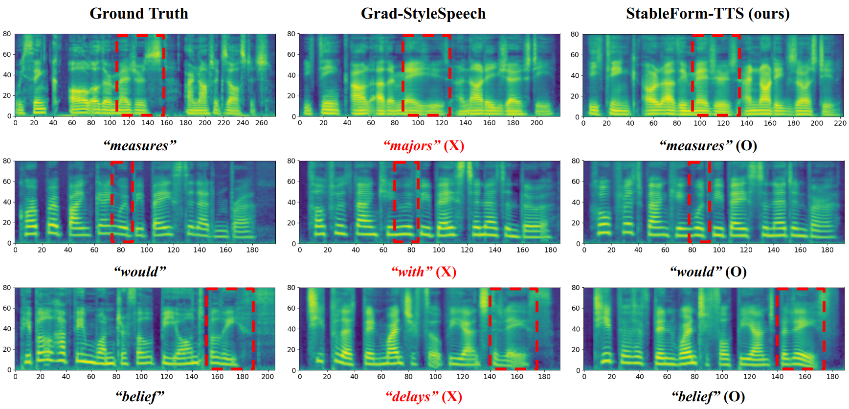 | Speaker | Text | Ground Truth | Grad-StyleSpeech | StableForm-TTS (ours) |